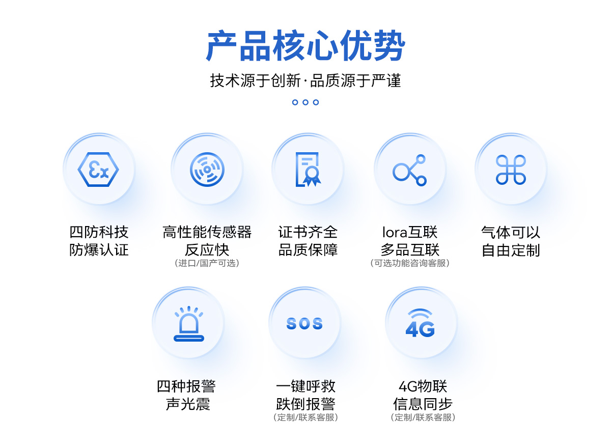 | 檢測氣體 | 可燃/有毒有害氣體/氧氣等 |